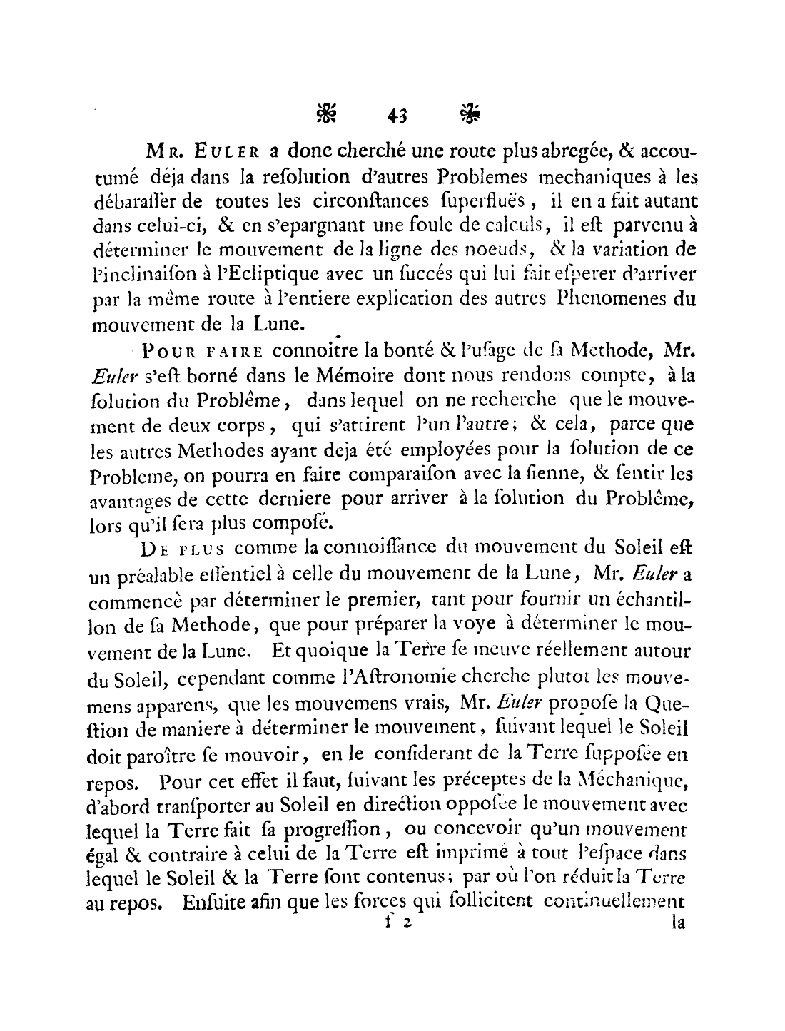 EULER, Leonhard: Sur le mouvement des noeuds de la lune, et sur la variation de son inclinaison à l'Écliptique